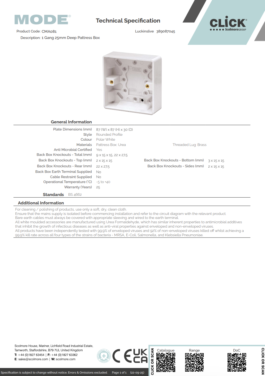 CMA081 1 Gang 25mm