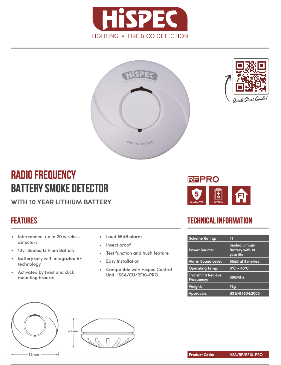 Compatible with Hispec Control Unit HSSA/CU/RF10-PRO