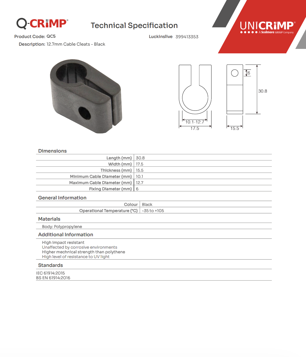 QC5 – 12.7mm Cable Cleats