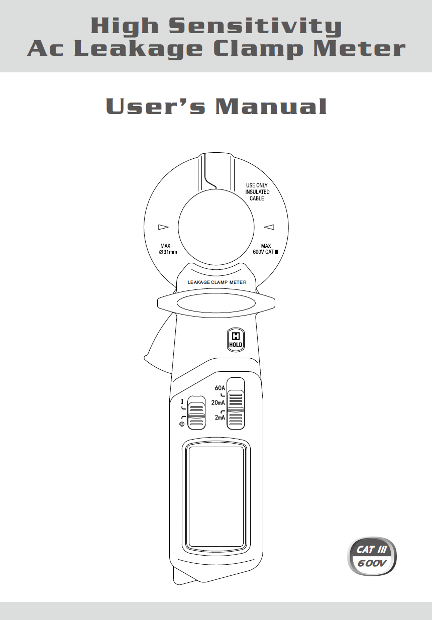 Access the complete High Sensitivity AC Leakage Clamp Meter Userβs Manual for accurate guidance on setup, operation, and maintenance. This detailed manual covers key features, measurement techniques, and safety precautions, helping users achieve precise leakage current readings in electrical systems. Ideal for electricians, engineers, and maintenance professionals, it ensures reliable performance and correct usage of the clamp meter. Download the manual for quick reference and maximise the efficiency and safety of your testing equipment.